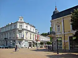| Centrul vechi al orașului Ruse | Centrul vechi al orașului este pătrat în jurul Muzeului de Istorie din Ruse. Biblioteca regională "Liuben Karavelov" este situată și ea în piață. Clădirea este decorată cu ornamente în stil baroc — frunze, perle și rozete. Fosta bancă a lui Ivan și Stefan Simeonov este situată la începutul străzii "Aleksandrovska". Clădirea este tipică pentru Ruse: stil baroc. | ![]() |