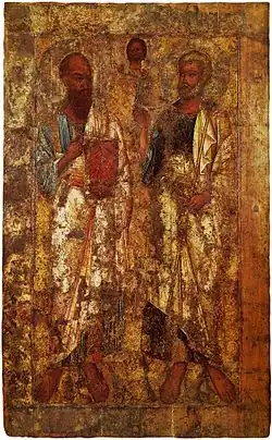 Apostolii Petru și Pavel. Una din cele mai vechi icoane rusești din Catedrala Sf. Sofia, în Veliki Novgorod