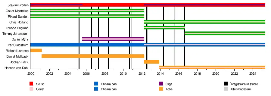| Joakim Brodén[*] Pär Sundström[*] Chris Rörland[*] Hannes Van Dahl[*] Tommy Johansson[*][5] Oskar Montelius[*] Rikard Sundén[*] Daniel Mullback[*] Daniel Myhr[*] Robban Bäck[*] Thorbjörn Englund[*] | |