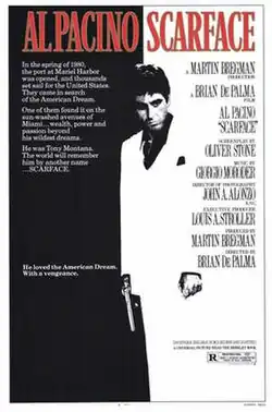 Scarface este un film epic din 1983 regizat de Brian De Palma, scris de Oliver Stone și din a cărui distribuție face parte Al Pacino în rolul lui Tony Montana.