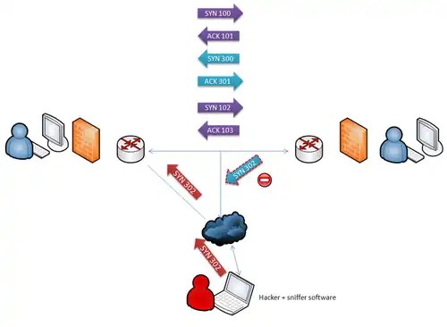 Sniffing se referă la actul de interceptare a pachetelor TCP (Transmission Control Protocol). Spoofing se referă la actul de trimitere nelegitimă a unui packet de așteptare ACK.