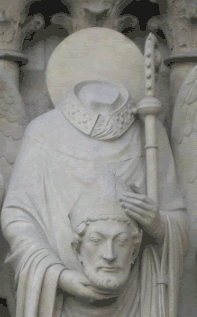Legenda aurea din secolul al XIII-lea a relatat martiriul Sfântului Dionisie, la care a adăugat elemente fantastice. Astfel, după ce i-a fost tăiat capul în zona Montmartre („Dealul Martirilor”), bătrânul episcop Dionisie s-a ridicat, și-a luat capul în mâini și a mers circa 5 km de la locul decapitării până în nordul Parisului, unde și-ar fi depus capul în mâinile unei femei. Minunea a produs convertiri, iar în acel loc a fost ridicată Bazilica Saint Denis, care a fost necropola regilor Franței până la Revoluția din 1789.