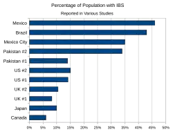 - ↑ Schmulson M, Ortíz O, Santiago-Lomeli M, Gutiérrez-Reyes G, Gutiérrez-Ruiz MC, Robles-Díaz G, Morgan D (). „Frequency of functional bowel disorders among healthy volunteers in Mexico City” (PDF). Dig Dis. 24 (3–4): 342–7. doi:10.1159/000092887. PMID 16849861.