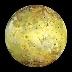 - Jupiter are 67 de sateliți cunoscuți. Cei mai mari patru sateliți, Ganymede, Callisto, Io și Europa prezintă similarități cu planetele terestre, cum ar fi vulcanismul și încălzirea internă.[93] Ganymede, cel mai mare satelit din sistemul solar, este mai mare decât planeta Mercur.