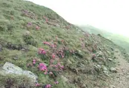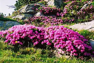 Rhododendron în Munții Rodnei, sub vârful Ineu