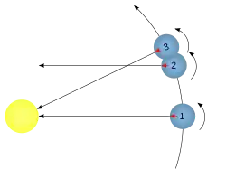 „Zi” siderală (de la 1 la 2) şi „zi” solară (de la 1 la 3)
