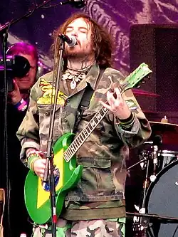 ![]() Max Cavalera pe scenă, evoluând live cu Soulfly în 2005 | |