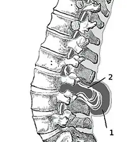 (2) Măduva spinării herniată și prinsă între vertebre