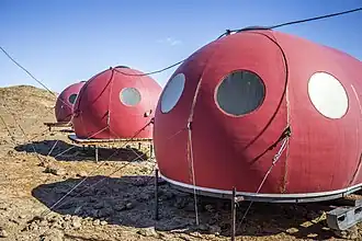 Cabanele de dormit sunt de culoare roșie, au fost construite din fibră de sticlă la exterior cu izolații termice din spuma poliuretanică în interior și au ferestre duble confecționate din policarbonat și fixate cu chedere de cauciuc. Deoarece grupul sanitar nu beneficiază de instalație specială de filtrare a reziduurilor, toate deșeurile produse sunt depozitate în recipiente speciale și evacuate odată cu membrii expedițiilor.