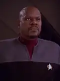 | Benjamin Sisko este ofițerul Flotei Stelare aflat în funcția de comandant al stației Deep Space Nine. La începutul serialului, el este prezentat ca văduv îndurerat (soția sa fusese ucisă de specia Borg în Bătălia de la Wolf 359) și tată al unui tânăr adolescent, Jake. Sisko și Jadzia Dax descoperă gaura de vierme bajorană, pe care bajoranii o consideră a fi sălașul profeților, zeii și protectorii lor. Bajoranii îl consideră pe Sisko a fi emisarul profeților, un înalt statut religios care la început îl incomodează. Datorită capacităților sale excepționale de conducător, la sfârșitul sezonului trei, el este promovat de la rangul de comandor la cel de căpitan și devine unul dintre comandații cheie ai forțelor Federației împotriva Dominionului. Aflăm de asemenea că mama sa biologică fusese un profet ce posedase corpul femeii care fusese prima soție a tatălui său. După nașterea lui Sisko, profetul a ieșit din corpul femeii, aceasta părăsindu-l imediat pe tatăl acestuia. Sisko a fost de fapt crescut de mama sa vitregă și de tatăl său; cu toate acestea, i se insuflase impresia că mama sa vitregă era cea adevărată. | |||||