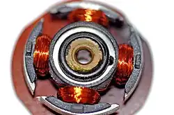 Statorul poate fi sau un magnet permanent sau un electromagnet. Atunci când statorul este un electromagnet, bobina care acționează este numită bobină de câmp.
