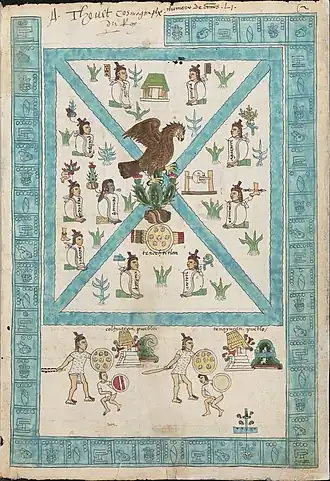 Deși această versiune ilustrată a legendei a fost prima dată utilizată în 1581 de către preotul catolic Diego Durán, care a dorit să ilustreze lucrarea sa "Atlas de la Historia de los Indios de la Nueva España e Islas de Tierra Firme", fiind ulterior adoptată și de alții, nu a fost utilizată ca stemă a Mexicului decât mult mai târziu, în timpul Războiului mexican de independență.
