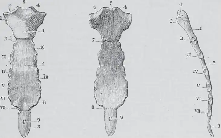 La stânga - fața anterioară, la mijloc - fața posterioară, la dreapta - marginea laterală văzută din dreapta.