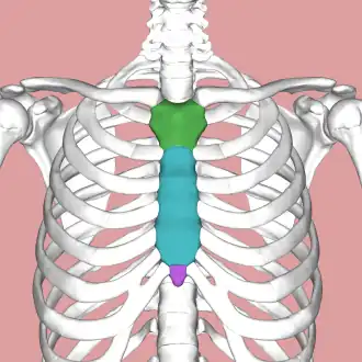 ![]() Părțile sternului - manubriul (verde), corpul (albastru), procesul xifoidian (violet) | |