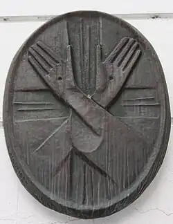 Mâini cu stigmate într-o biserică franciscană din Lienz, Austria.