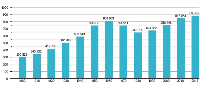 Populația orașului Stockholm în perioada anilor 1900-2012
