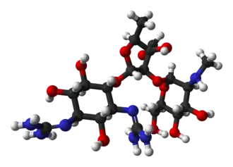 Streptomicina este un antibiotic cu acțiune bactericidă din clasa aminoglicozidelor care acționează asupra bateriilor Gram-negative, fiind utilizat în tratamentul unor infecții bacteriene.[5][6] Printre acestea se numără tuberculoza (în combinație cu alte antituberculoase: izoniazidă, rifampicină și pirazinamidă), tularemia, ciuma, bruceloza și endocardita enterococică. Alte infecții includ infecțiile oculare.[6] Căile de administrare disponibile sunt locală (sub formă de colir), intravenoasă și intramusculară[5]