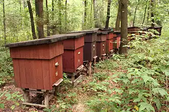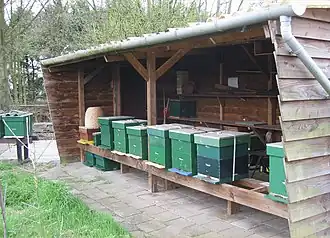 - stupină staționară/permanentă - stupină amplasată de obicei în locul unde albinele iernează;