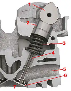 Pentru că supapa se deschide spre camera de ardere al motorului, efectul de închidere al acesteia crește prin presiunea combustiei.