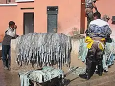 Prelucrarea pieilor începe prin tratarea acestora cu sare. Acest lucru se poate face prin presărarea cu sare umedă pe piei și apoi legarea acestora în pachete și lăsarea lor timp de 30 de zile sau prin introducerea pieilor în saramură timp de 16 ore după care se scoate, se clătește cu apă și se introduce într-o soluție de var care are rolul de a suaviza pielea. După aceasta se îndepărtează părul de pe suprafața pieilor cu ajutorul unor mașini de tuns sau cuțite. În funcție de tipul pielii, acestea se pot trata cu diferite enzime pentru a deveni mai moi. În ultima fază pieile sunt curățate de resturile de carne, grăsimi și piele, se lasă în apă o perioadă cuprinsă între 6 ore și 2 zile și pentru a le feri de distrugere prin creșterea unor culturi de bacterii pe suprafața acestora se tratează cu biocizi precum pentaclorofenol.