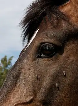 Tăunul Haematopota pluvialis pe capul unui cal