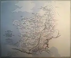 - ↑ Titlul, în română: „Hartă de îndreptare a Galiei pentru înțelegerea Tabulei Peutingeriana”