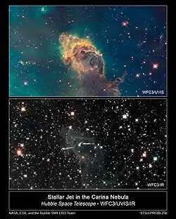Telescopul spațial James Webb (JWST) este un telescop spațial dezvoltat de NASA, Agenția Spațială Europeană (ESA) și Agenția Spațială din Canada (CSA). Este destinat să succcedă telescopului spațial Hubble ca misiune emblematică a NASA în astrofizică.[6][7] JWST a fost lansat la 25 decembrie 2021 pe o rachetă Ariane 5 VA256. Este conceput să ofere o rezoluție și o sensibilitate îmbunătățite în infraroșu față de Hubble și va permite o gamă largă de investigații în domeniile astronomiei și cosmologiei, inclusiv observații ale unora dintre cele mai îndepărtate evenimente și obiecte din Univers, cum ar fi formarea primelor galaxii. Permite caracterizarea atmosferică detaliată a exoplanetelor potențial locuibile .