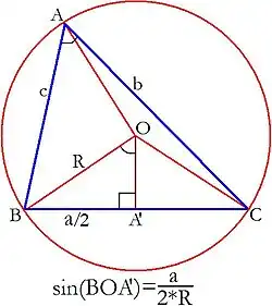 de unde rezultă că . Printr-un raționament similar, rezultă că și sinusurile unghiurilor B și C iau aceeași valoare.