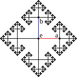 Teoria geometrică a grupurilor abordează aceste probleme dintr-un punct de vedere geometric, fie prin vizualizarea grupurilor ca obiecte geometrice, fie prin găsirea de obiecte geometrice potrivite asupra cărora acționează un grup.[4] Prima idee este precizată prin intermediul grafului Cayley(d), ale cărui noduri corespund elementelor grupului și ale cărui muchii corespund înmulțirilor corecte din grup. Date fiind două elemente, se construiește metrica de cuvânt(d) dată de lungimea căii minime dintre elemente. O teoremă a lui Milnor și a Svarc spune apoi că, dat fiind un grup G care acționează într-o manieră rezonabilă asupra unui spațiu metric X, de exemplu o varietate compactă(d), atunci G este cvasi-izometric(d) (adică pare similar de la distanță) cu spațiul X.