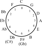 Prezența periodicității(d) de 12 în cercul cincimilor oferă aplicații ale teoriei grupurilor elementare în teoria mulțimilor muzicale(d).