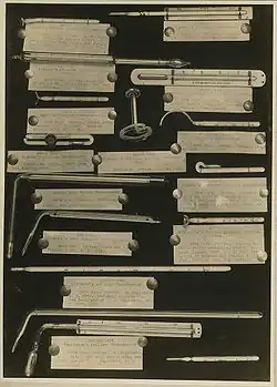 Diferite instrumente de măsurare a temperaturii au fost inventate astfel: în 1821 Thomas Johann Seebeck (1770–1831) descoperă efectul Seebeck, respectiv termocuplul, în 1864 Antoine Henri Becquerel (1852–1908) propune pirometrul optic, construit efectiv în 1892 de Henry Louis Le Chatelier (1850–1936), în 1871 Carl Wilhelm Siemens (1823–1883) descrie termometrul cu rezistență, iar în 1930 Samuel Ruben (1900–1988) inventează termistorul.
