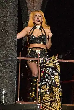 - ↑ en Blalock, Meghan (). „Lady Gaga's Born This Way Ball Tour Outfits: All by Versace”. InStyle. Accesat în .