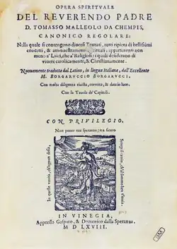 - ↑ Cunoscută și cu numele de De Imitatione Christi.