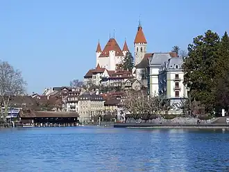Regiunea Thun a intrat în Sfântul Imperiu Roman în 1033,când Conrad al II-lea a primit titlul de rege al Burgundiei. Împărații au încredințat familiei Zähringen, din Berna, sarcina de a supune nobilii răzvrătiți din Elveția centrală. În jurul anului 1190, ducele Bertold al V-lea von Zähringen a construit un castel la Thun, și a extins orașul.