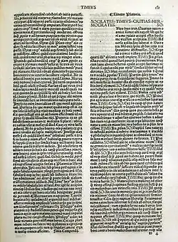Prima pagină a Timeului în ediție princeps, Veneția 1513