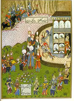 Miniatură otomană din Palatul Topkapi, înfățișând consecințele capturării Timișoarei în 1552.