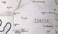 Tibiscus și așezările aferente pe o hartă a Daciei, realizată după Geografia lui Ptolemeu.