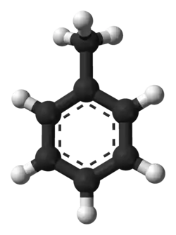 Toluenul sau toluolul este o hidrocarbură aromatică lichidă, incoloră, inflamabilă, insolubilă în apă, din seria benzenului. Toluenul se extrage din gazele de cocserie și din gudroanele cărbunilor de pământ. Se întrebuințează la prepararea unor coloranți, a unor medicamente etc. În combinație cu alte elemente poate deveni extrem de periculos; de exemplu prin nitrarea toluenului se obține trinitrotoluenul (trotilul) - TNT, un exploziv puternic. Asupra organismului uman are efecte nocive dacă este inhalat, dar spre deosebire de benzen, care este cancerigen, toluenul nu prezintă asemenea efecte, datorită prezenței radicalului metil (CH3-), ce scade caracterul său aromatic făcându-l mai ușor asimilabil. De asemenea, toluenul este utilizat ca drog halucinogen, cu efecte devastatoare pentru sistemul nervos sau osos.[3][4]