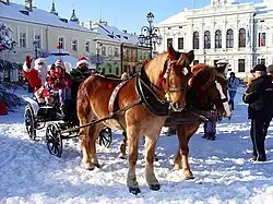 Crăciunul (poloneză: Boże Narodzenie, Narodzenie Pańskie) în Polonia este o sărbătoare principală anuală, la fel ca în majoritatea statelor creștine. Crăciunul a fost introdus odată cu apariția creștinismului în Polonia, sărbătoarea dezvoltându-se treptat de-a lungul secolelor, începând din cele mai vechi timpuri. Vechile obiceiuri păgâne s-au combinat cu obiceiurile religioase importate odată cu creștinarea Poloniei de către Biserica Romano-Catolică. Printre sarcinile speciale efectuate de polonezi în casele lor în timpul Adventului (un timp de așteptare pentru sărbătorirea Nașterii lui Iisus) se numără și coacerea unor turte dulci de Crăciun numite piernik, precum și realizarea unor decorațiuni de Crăciun. Piernikii pot avea diferite forme, cum ar fi inimi, animale sau reprezentări ale Sf. Nicolae. Printre decorațiunile vechi tradiționale se numără stele realizate manual, coji de ouă decorate, ghirlande colorate de hârtie etc. Crapul este o componentă principală a mesei Ajunul Crăciunului în Polonia, servindu-se file de crap, piftie de crap etc. Alimentele poloneze de Crăciun includ pierogi precum și unele preparate de hering, iar pentru desert, makowiec[34] sau fidea cu semințe de mac. Adesea, se servește ca băutură un compot de fructe uscate (prune, mere, pere). Colindele de Crăciun sunt cântate în Polonia după Liturghia de Crăciun.[35] Sezonul de Crăciun ține de obicei până la 2 februarie.