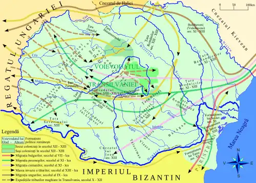 În primăvara anului 1241, marea invazie mongolă (cunoscută și sub numele de marea invazie tătară) a lovit puternic Transilvania. Güyük Khan a pătruns în regiune prin Pasul Oituz, în timp ce Subotai a atacat din sud, traversând Pasul Mehedia spre Orșova.[24] În timp ce Subotai înainta spre nord pentru a se alătura lui Batu Khan, Güyük a atacat Sibiul pentru a împiedica nobilimea transilvăneană să sprijine regele Béla al IV-lea al Ungariei. Mongolii au devastat Bistrița, Clujul și toată regiunea Podișului Transilvaniei, distrugând și mina de argint de la Rodna. O altă forță mongolă a anihilat cumanii lângă râul Siret, în actuala Moldovă, și a distrus Episcopia de Milcov. Cumanii din zonă, după înfrângerea lor de către mongoli, s-au convertit la romano-catolicism și au căutat refugiu în centrul Ungariei, în regiunea numită Kunság. Distrugerile provocate de mongoli au fost impresionante. Călugărul italian Rogerius (1201/1205-1266) relatează în Carmen miserabile cum a străbătut Transilvania, trecând din sat în sat, fără a întâlni pe nimeni. În Alba Iulia a găsit doar cadavrele și craniile celor măcelăriți de invadatori. Multe așezări au fost pustiite și nu au mai fost repopulate decât după multe decenii.[25]