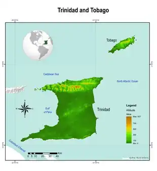 ![]() Hartă a Republicii Trinidad și Tobago ![]() Topografia Republicii Trinidad și Tobago |