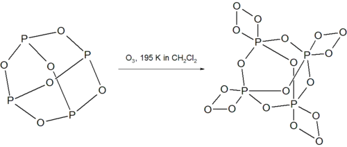Când P4O6 reacționează cu ozonul, la o temperatură de 195 K în mediu de diclorometan, se formează un compus al fosforului, extrem de instabil, cu formula P4O18:[6]