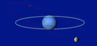 - ↑ With respect to Triton's orbit about Neptune.