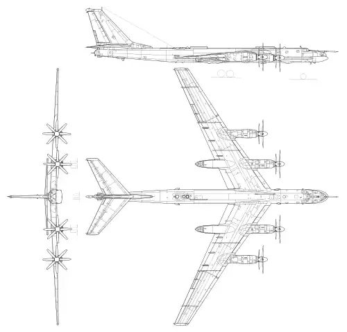 - Tu-95/2: al doilea prototip propulsat de turbo-propulsoare Kuznetsov NK-12.