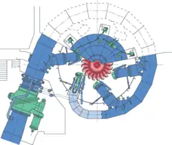 Turbina Pelton este o turbină hidraulică cu rotație axială, având rotorul cu pale fixe, utilizată la hidrocentralele de cădere mare a apei.