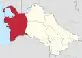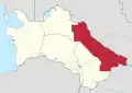 | Lebap | 93.730 | 1.334.500 | 14 | Türkmenabat | TM-L | provincie | 16 | ![]() |