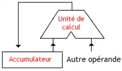 - Acumulatorul - registru de uz general care este utilizat de UAL pentru stocarea unuia dintre operanzi și pentru rezultatul operației; are un rol cu totul special în comparație cu celelalte registre de uz general.