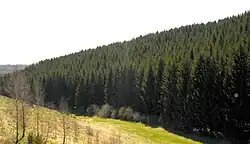 Pădurile de conifere și de foioase includ elemente faunistice cum sunt: cerbul (Cervus elephus), ursul (Ursus arctos), lupul (Canis lupus), jderul de pădure (Martens martens), mistrețul (Sus scrofa), iepurele (Lepus europaeus).