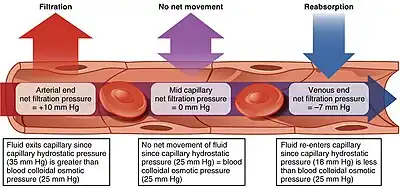 Depiction of the filtration and reabsorption present in capillaries.
