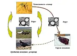 - ↑ Olejnik E (1952). "Infectious adenitis transmitted by Culex molestus". Bull Res Counc Isr 2: 210–1.
